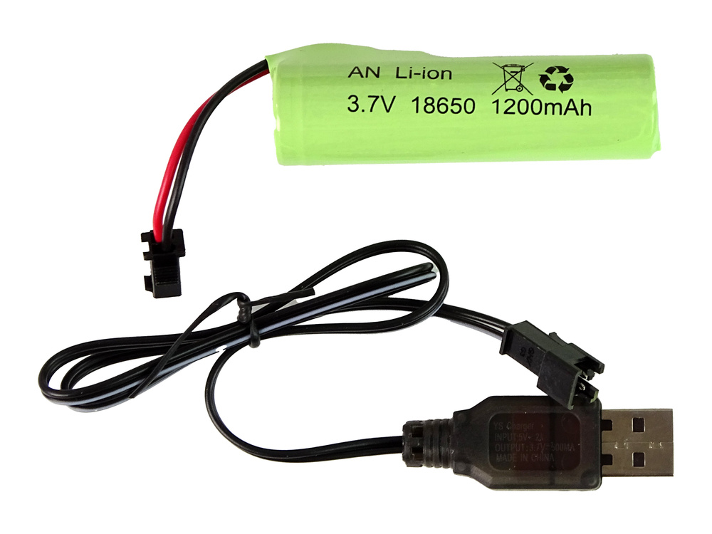 Czarny pilot z czerwonymi przyciskami jest lekki, poręczny i idealny dla małych rączek. Jego wymiary to: 13 cm x 10 cm x 4 cm. Wymiary auta to 29 cm x 18 cm x 16 cm. Zestaw zawiera autko, pilot, akumulator 3.7V 1200mAh oraz ładowarkę z wejściem USB do ładowania akumulatora.