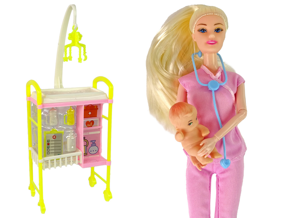 - Zapraszamy do świata lalki lekarza, o długich blond włosach i niebieskich oczach. Jej stylowy różowy fartuch medycznego eksperta, stetoskop, spodnie i srebrne buty dodają uroku. Doskonały prezent dla przyszłych lekarzy i opiekunów.