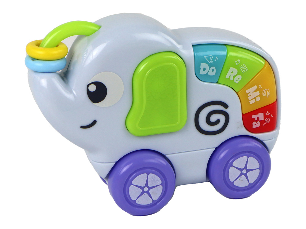 Dodatkowo, w zestawie znajduje się grający słonik na kółkach, który również może być wyjęty. Ten uroczy towarzysz dostarcza muzyki i dźwięków, co dodaje jeszcze więcej radości do zabawy.