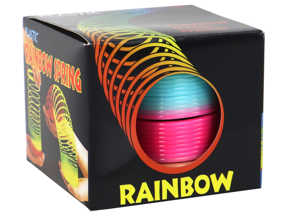 - Kultowa sprężyna w kolorze tęczowym. Ta elastyczna i zabawna sprężyna ma imponujący rozmiar 6 cm i oferuje niekończącą się rozrywkę zarówno dla dzieci, jak i dorosłych.