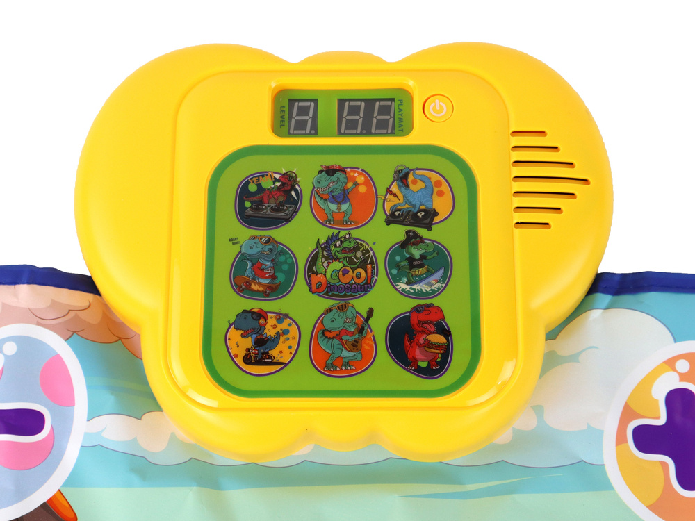 - Mata do tańczenia z dinozaurami, 90x86 cm, 5 poziomów trudności, dźwięki, regulowana głośność, efekty świetlne. Radość i aktywność!
