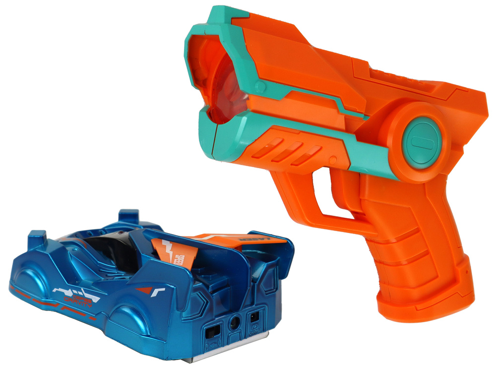 - Niebieski samochodzik, który potrafi jeździć po ścianach i suficie, dzięki technologii niwelującej grawitację. Sterowanie odbywa się za pomocą dołączonego lasera.