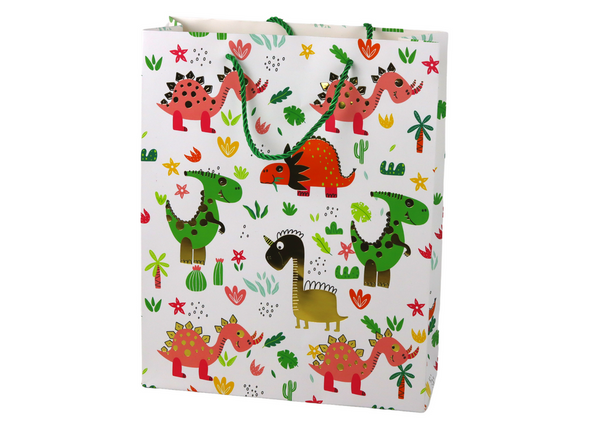 - Torebka prezentowa z motywem dinozaurów to wyjątkowy sposób na podkreślenie radości i kolorowej atmosfery podczas obdarowywania bliskiej osoby.