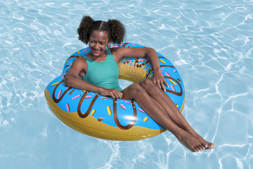 Wybierając się nad wodę warto zabrać ze sobą wszystkie niezbędne akcesoria basenowe, wspaniałym dodatkiem do wodnego wypoczynku i zabawy będzie również pompowane koło do pływania. Koło przeznaczone jest dla dzieci od 12 roku życia oraz wszystkich dorosłych. Jego średnica to aż 107 cm. Koło jest wygodne oraz stabilnie utrzymuje się na wodzie. Jest wytworzone z wytrzymałego materiału PVC odpornego na zniszczenia oraz działania promieni słonecznych.