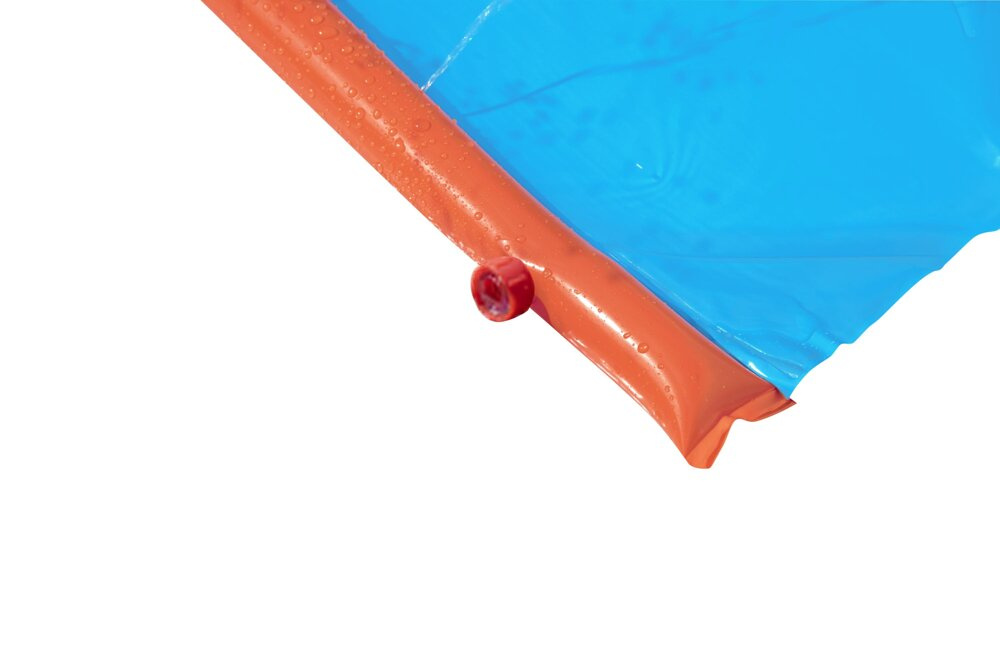 Na końcu torowiska wbudowany jest basen, który zapewni miękkie lądowanie i przyjemnie schłodzi ciało. Prezentowana ślizgawka wykonana jest z mocnego winylu. Jest on odporny na uszkodzenia, delikatny w dotyku i nie podrażni skóry dziecka. Ślizgawka jest lekka, praktyczna i nie zajmuje wiele miejsca.