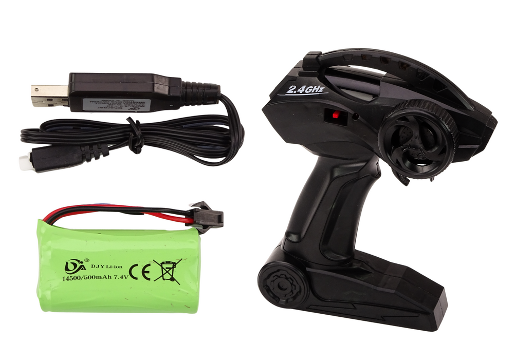 Wyposażony w duże, terenowe koła, samochód gwarantuje doskonałą przyczepność i stabilność na różnych nawierzchniach – od asfaltu, przez piasek, aż po kamieniste ścieżki. Wytrzymałe zawieszenie pozwala na płynne pokonywanie przeszkód, co czyni go idealnym pojazdem do dynamicznych wyzwań.