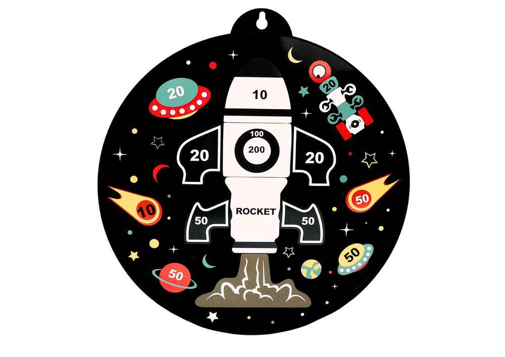 Dwustronność tarczy to jej kluczowa cecha. Z jednej strony prezentuje klasyczną tarczę strzelecką, idealną dla tradycyjnych rozgrywek. Z drugiej strony, odkryjesz kosmiczną rakietę z punktacją na poszczególnych sekcjach, co stanowi oryginalną alternatywę dla tych, którzy poszukują czegoś nowego i unikatowego.
