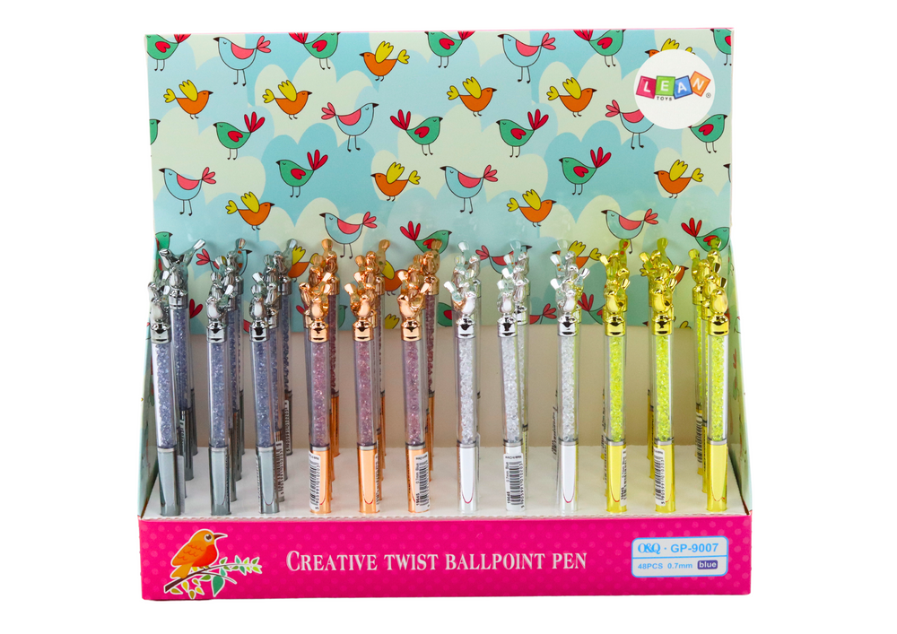 - Elegancki długopis z ptakiem na końcu łączy styl i wyjątkowy design. Przeźroczysta obudowa z malutkimi diamencikami subtelnie mieni się w świetle, a tusz w kolorze niebieskim sprawia że jest idealny do codziennego użytku.