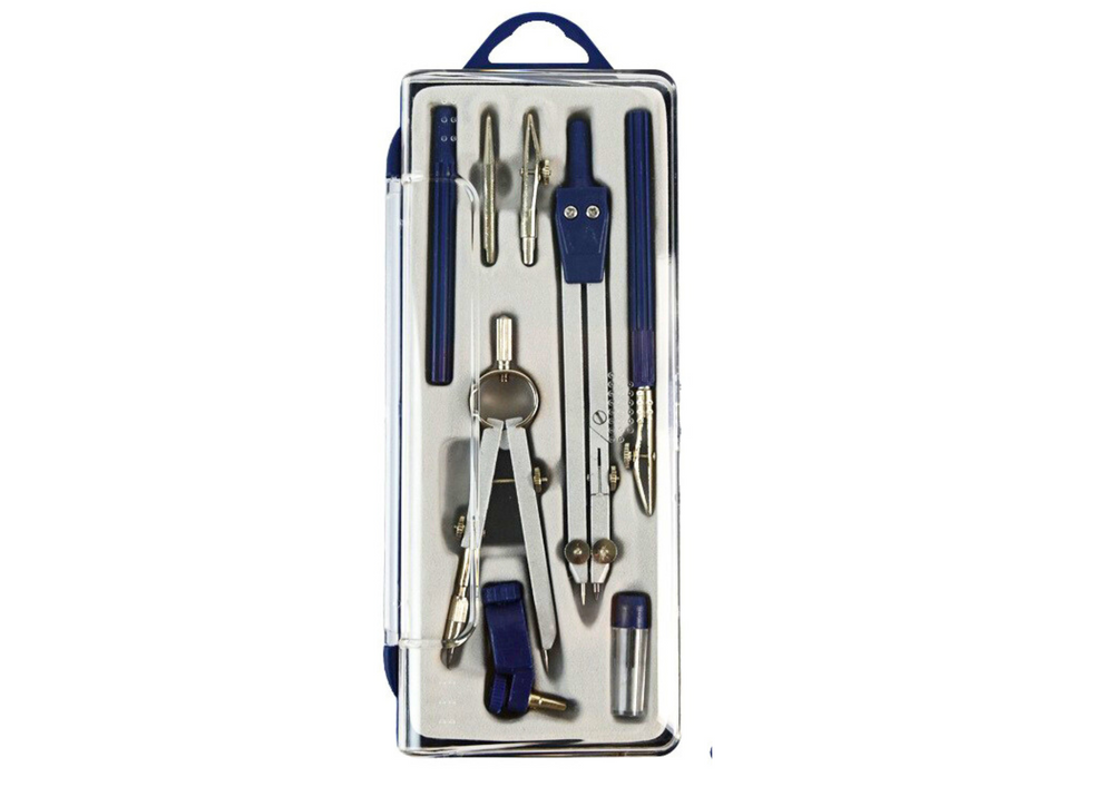 Zestaw Kreślarski Geometryczny Cyrkiel Techniczny Organizer 9 ele.