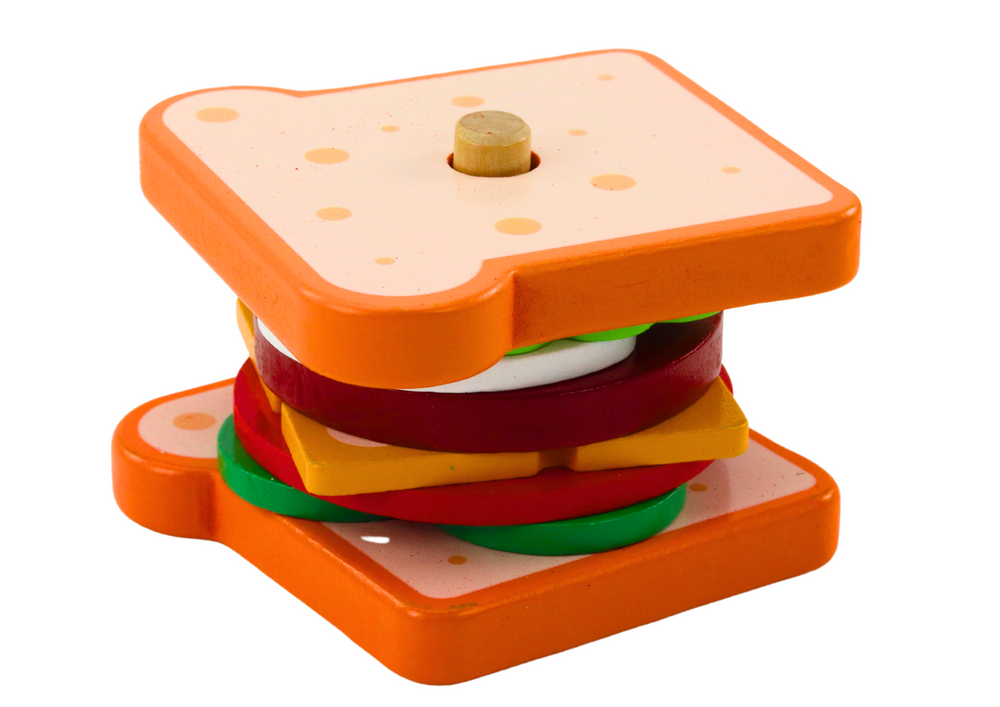 - Zestaw drewniany kanapka składa się z 8 elementów i 10 kart z zamówieniami, które uczą dzieci składania kanapki według przepisów. Zabawa rozwija umiejętność rozróżniania kolorów, kształtów oraz składników.