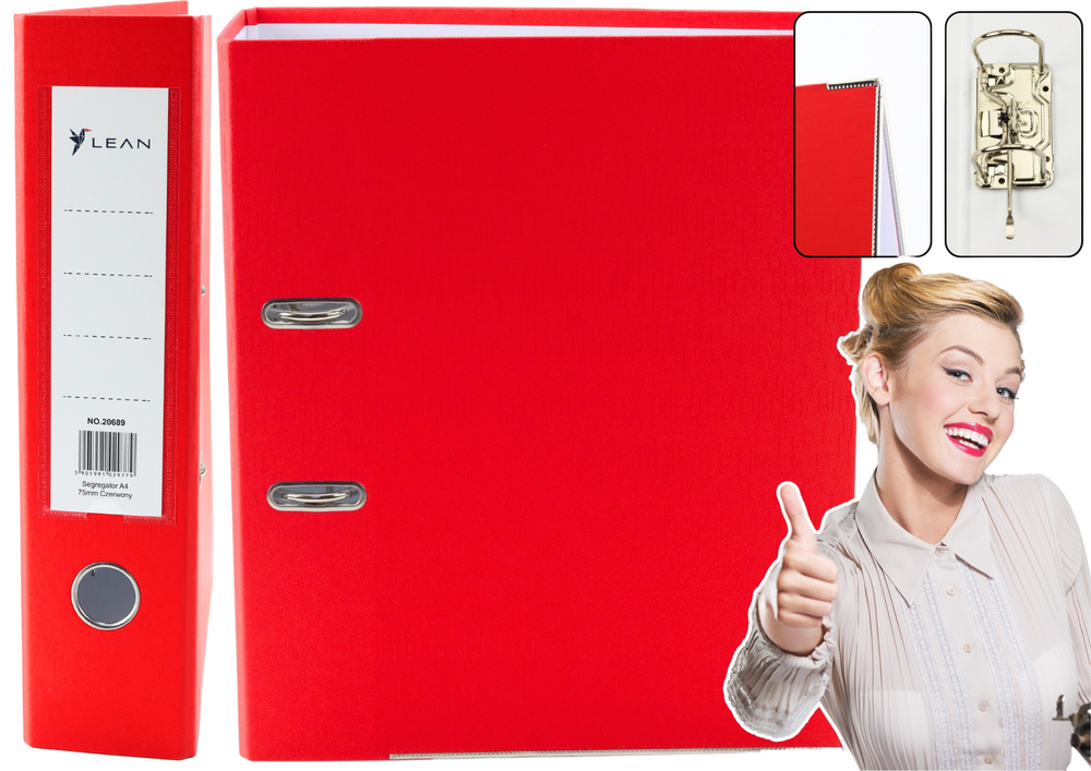 Segregator na dokumenty A4 z szerokim grzbietem 75 mm w eleganckim, intensywnie czerwonym kolorze. Idealny do przechowywania dokumentów w biurze, domu oraz do organizacji materiałów szkolnych. Ten pojemny segregator mieści do 500 kartek (o gramaturze 80g/m²), co czyni go świetnym rozwiązaniem do archiwizacji faktur, umów, raportów i innych istotnych dokumentów. Wysoka jakość wykonania sprawia, że segregator jest niezawodny i trwały.