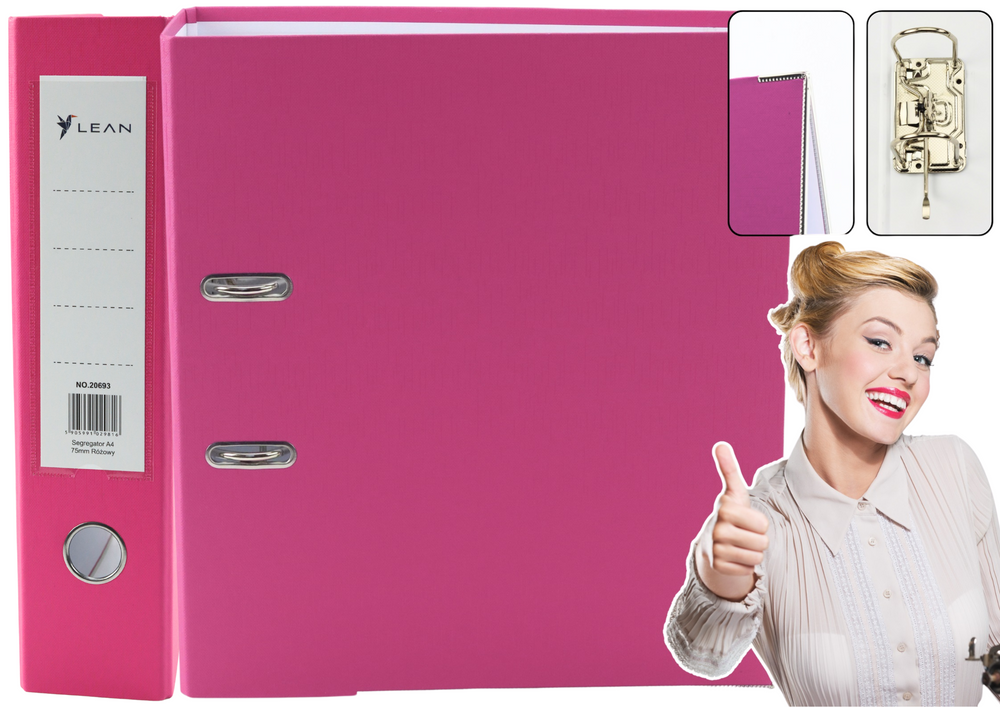 Segregator Na Dokumenty A4/75mm Okucie Mechanizm Dźwigniowy Różowy