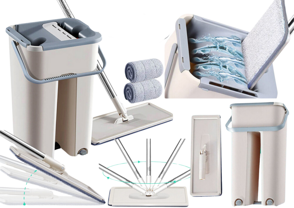 - Mop z Wiadrem Wyciskany Płaski Dwukomorowy ułatwia sprzątanie dzięki dwukomorowemu systemowi oddzielającemu czystą i brudną wodę. Idealny do różnych podłóg, z teleskopowym drążkiem i dwoma wkładami z mikrofibry. Lekki, łatwy w przechowywaniu.