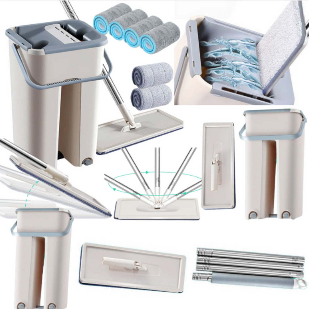 Mop z Wiadrem Dwukomorowym to innowacyjne narzędzie, które zapewnia komfortowe i higieniczne sprzątanie. Dzięki płaskiej głowicy mopa, która dociera do trudno dostępnych miejsc – takich jak narożniki, przestrzenie pod meblami i wzdłuż listew przypodłogowych – sprzątanie staje się łatwe, szybkie i dokładne. Wyposażony w dwukomorowe wiadro, oddziela czystą wodę od brudnej, co zwiększa poziom higieny i komfortu bez konieczności moczenia rąk.