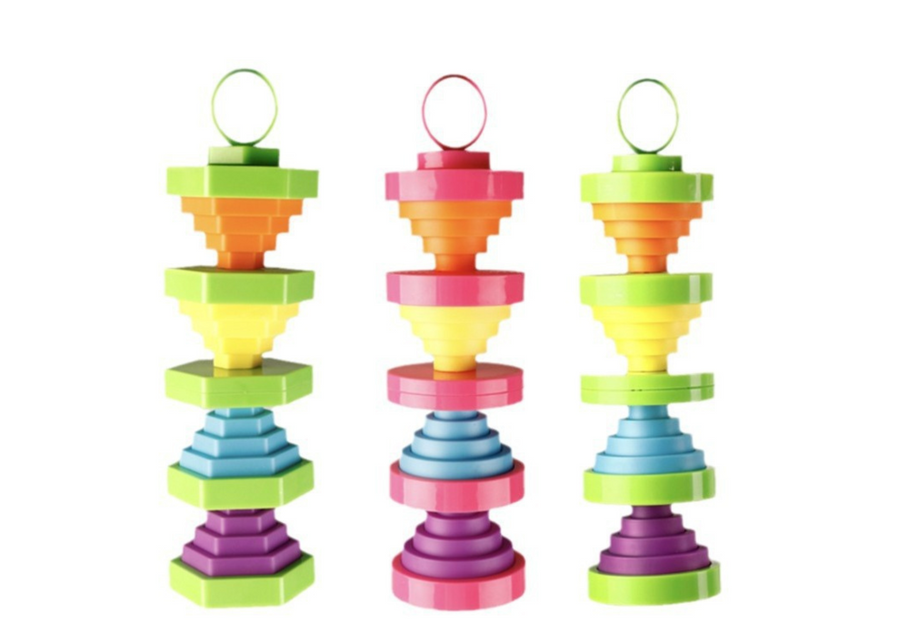 Zabawka wspomaga naukę rozpoznawania kształtów, kolorów i wzorów, przyczyniając się do rozwijania motoryki małej.