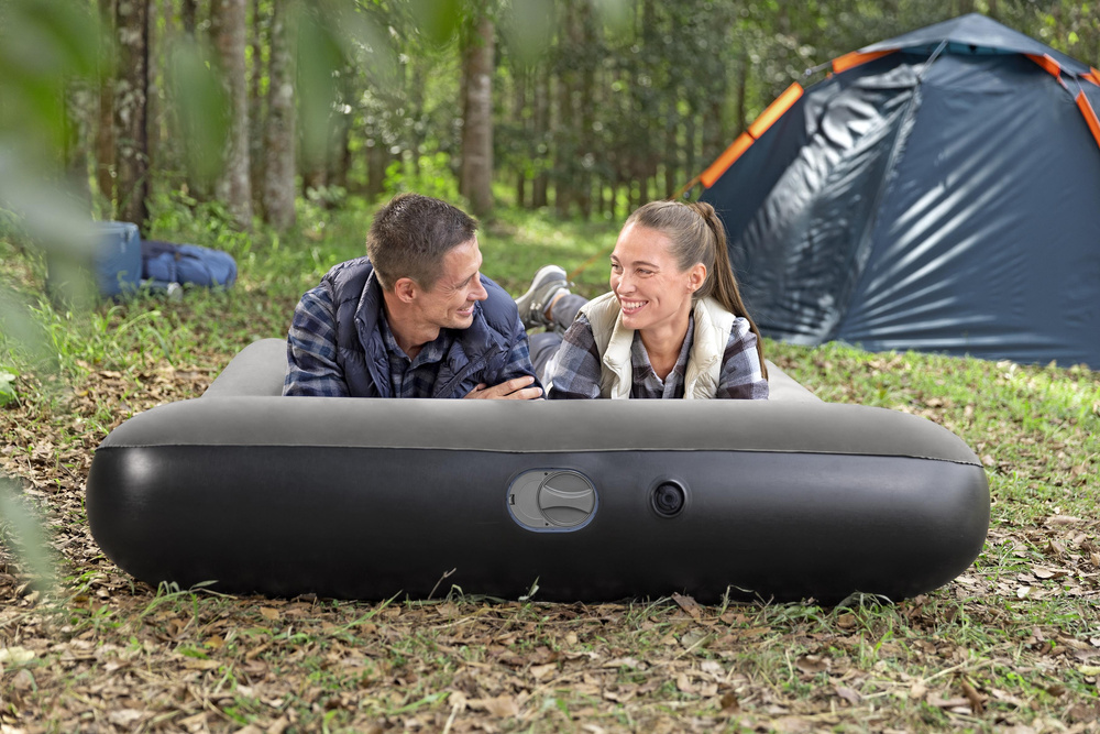 - Ciesz się komfortem i wygodą podczas każdej podróży dzięki dwuosobowemu materacowi Bestway. Wykonany z wysokiej jakości PVC, ma wbudowaną pompkę USB, która ułatwia szybkie nadmuchanie bez potrzeby używania dodatkowych narzędzi.