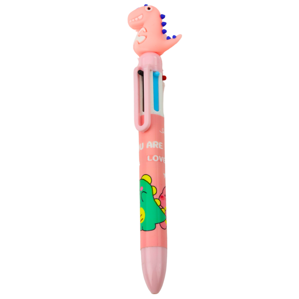 - Kolorowy długopis z motywem dinozaura to kreatywny i praktyczny dodatek do piórnika każdego dziecka. Dzięki jednej obudowie zawierającej aż 6 różnych kolorów tuszu, pisanie i rysowanie staje się jeszcze bardziej ekscytujące.