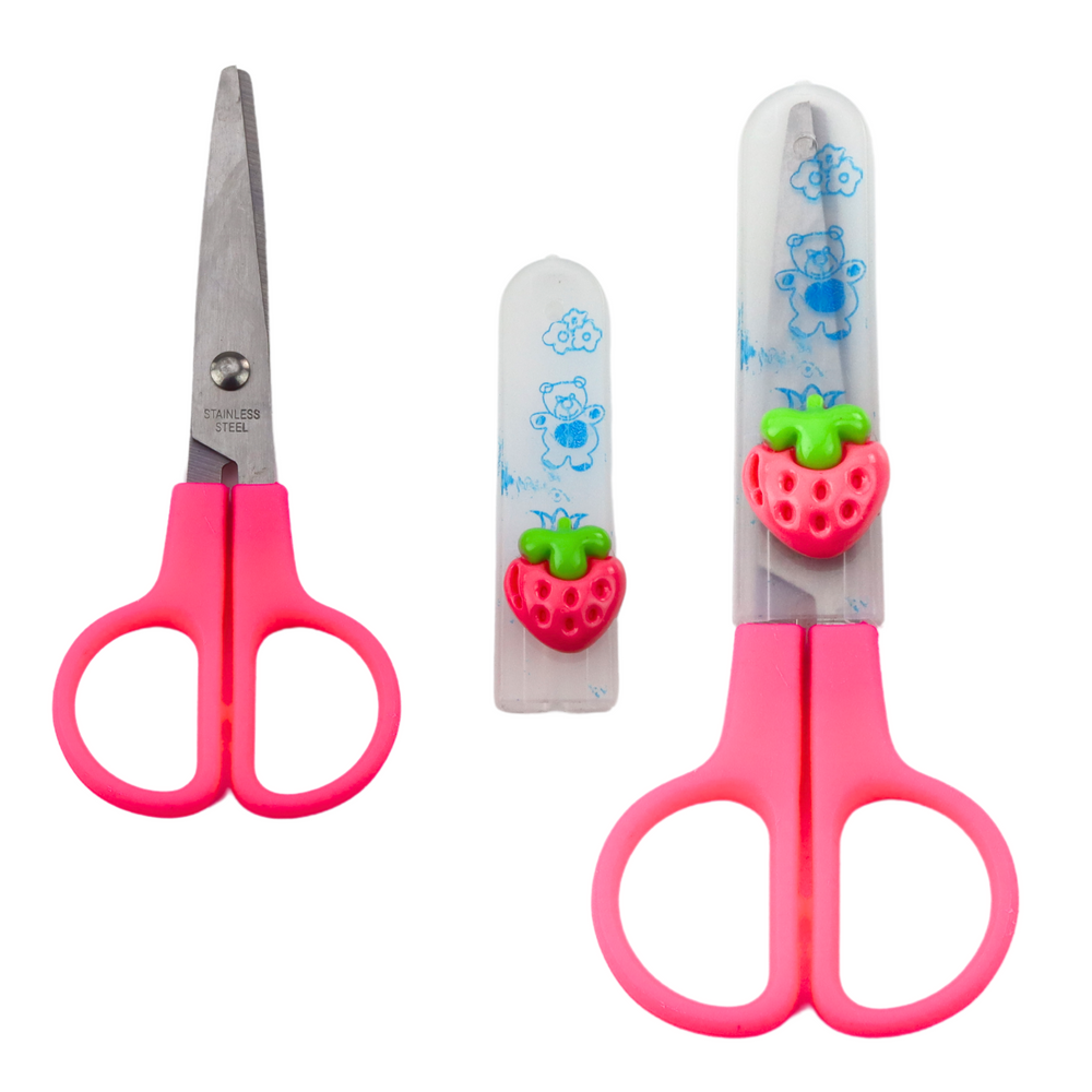 - Nożyczki szkolne o długości 12 cm to doskonały wybór dla najmłodszych dzieci rozpoczynających swoją przygodę z pracami plastycznymi. Posiadają zaokrąglone końcówki ostrzy oraz nakładkę ochronną, która zabezpiecza ostrze i pełni funkcję dekoracyjną.