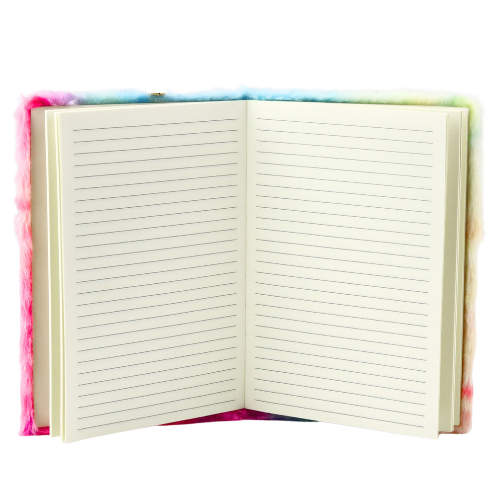 Zawiera 80 kartek w linię w poręcznym formacie A5, dzięki czemu z łatwością zmieści się w plecaku, torebce lub na biurku. Miękka pluszowa okładka zachęca do sięgania po niego każdego dnia i czyni go również idealnym pomysłem na prezent dla dzieci i młodzieży.
