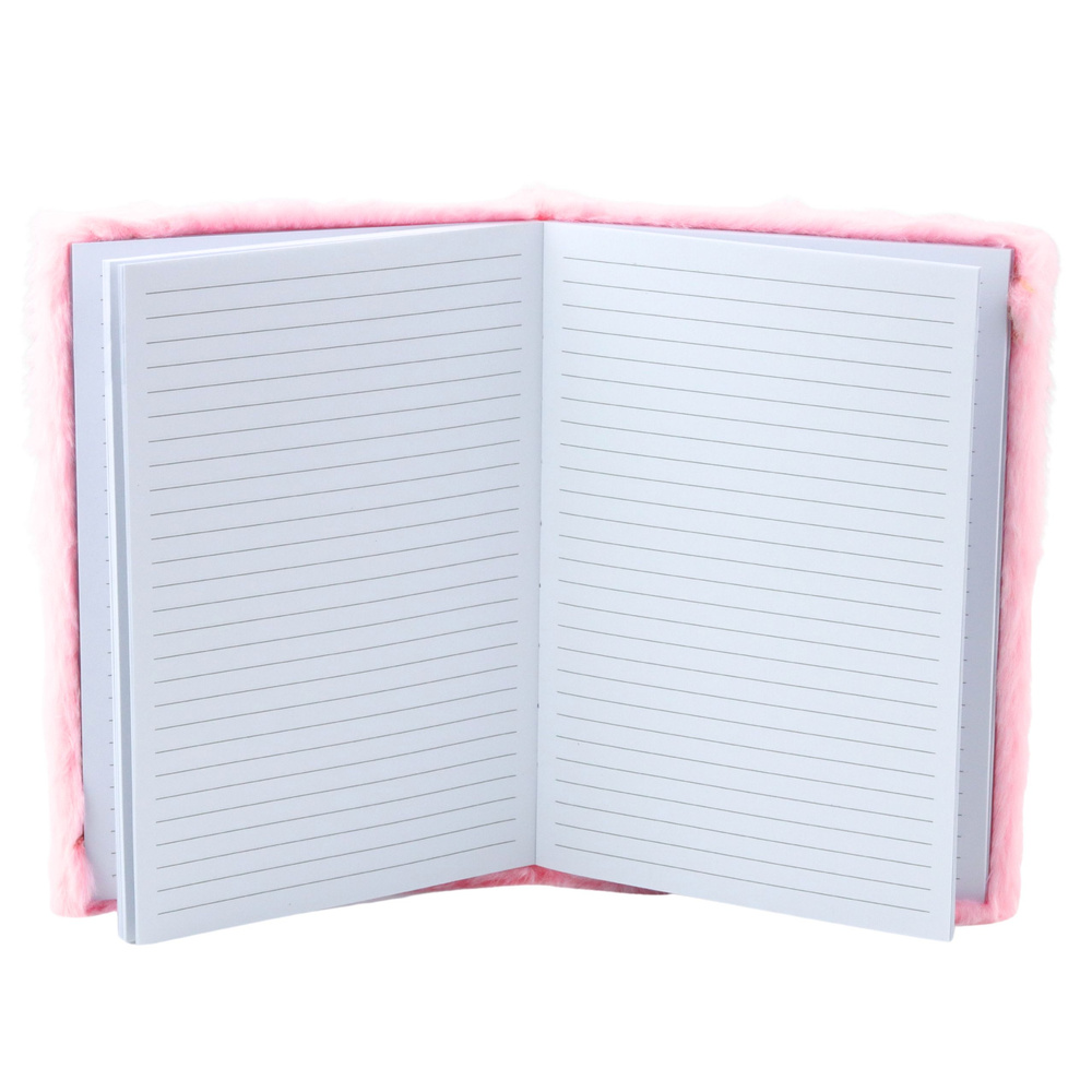 Okładka została wykonana z miękkiego, przyjemnego w dotyku pluszu w jasnoróżowym kolorze. W środku znajdują się 80 kartek w linię, idealnych do prowadzenia zapisków, pamiętnika, zeszytu szkolnego lub kreatywnego dziennika. Dzięki formatowi A5 i kompaktowym wymiarom zeszyt doskonale mieści się w torbie, plecaku czy na szkolnym biurku.