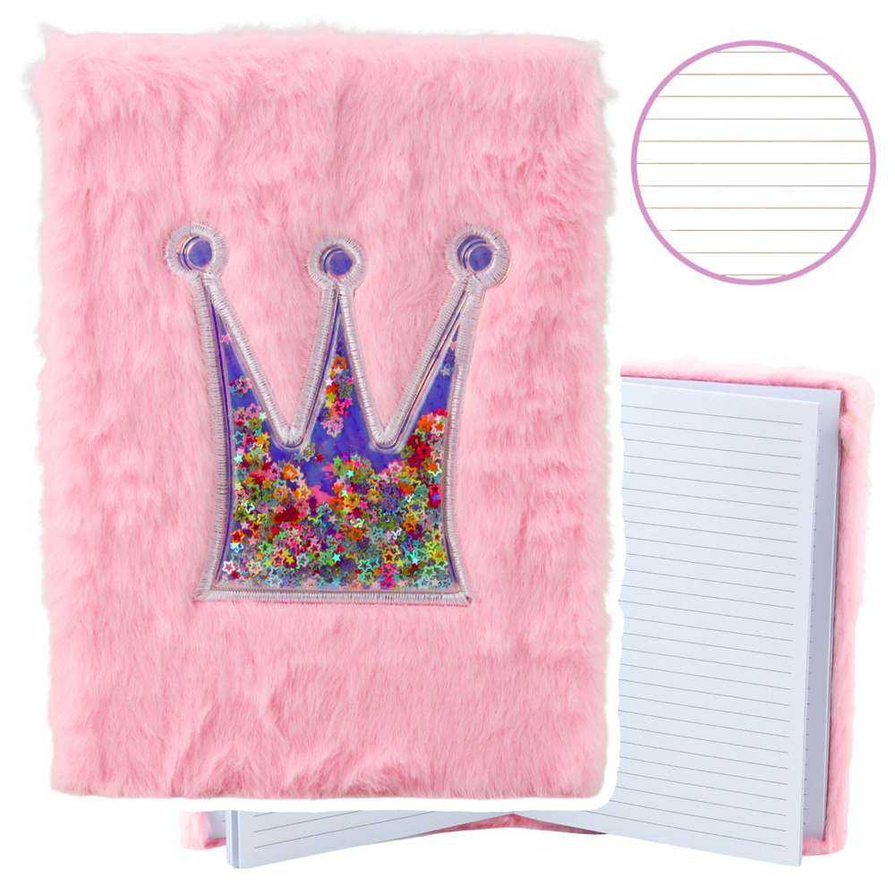 Pluszowy zeszyt w linie z ozdobnym motywem korony to efektowne połączenie funkcjonalności i estetyki. Zaprojektowany z myślą o dzieciach, młodzieży i wszystkich miłośnikach królewskiego stylu, przyciąga wzrok i zachęca do codziennego użytkowania. W centralnej części zeszytu znajduje się dekoracyjna korona wypełniona kolorowym konfetti w kształcie gwiazdek, które swobodnie przesypuje się przy poruszaniu – tworząc ciekawy, dynamiczny efekt wizualny.