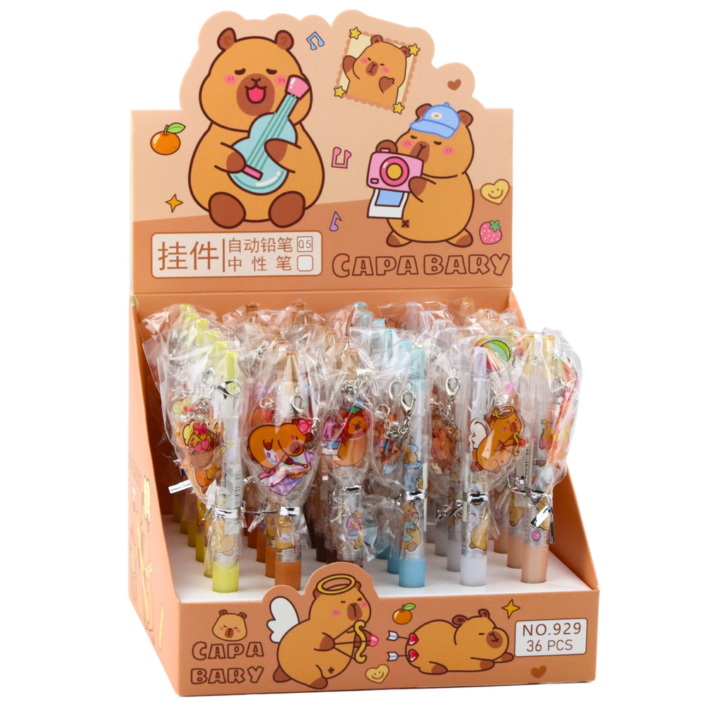 - Uroczy długopis żelowy z motywem kapibary i dołączonym breloczkiem to idealne połączenie funkcjonalności i oryginalnego designu. Wykonany z lekkiego tworzywa, wyróżnia się kolorowym nadrukiem oraz przyczepionym na łańcuszku brelokiem.