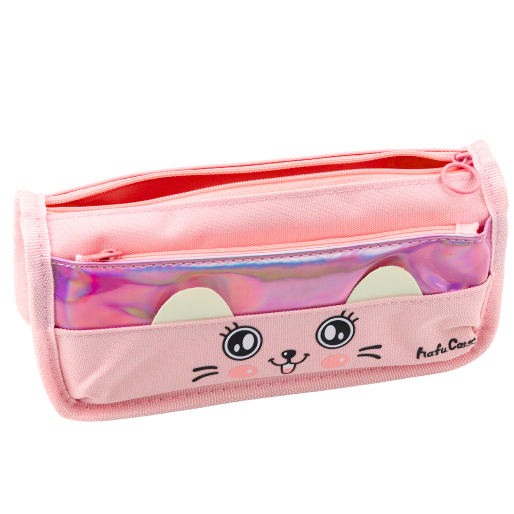 Uroczy piórnik szkolny z motywem kociej buźki to funkcjonalny i estetyczny dodatek dla każdego dziecka, który doskonale łączy praktyczność z wyjątkowym wyglądem. Wykonany w różowym kolorze, ozdobiony charakterystycznym kocim motywem i przezroczystą wstawką z uszkami, przyciąga wzrok i sprawia, że codzienne korzystanie z przyborów szkolnych staje się jeszcze przyjemniejsze.