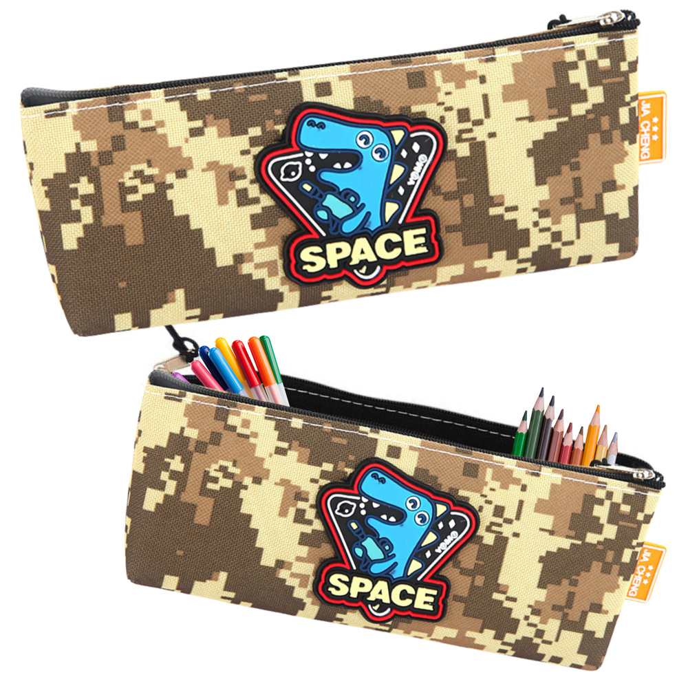- Piórnik z kosmicznym dinozaurem to idealny wybór dla dzieci, które kochają kosmos i dinozaury. Posiada wzór w piksele w kolorze khaki, a także kosmicznego dinozaura z bronią kosmiczną. Doskonały do przyborów szkolnych.
