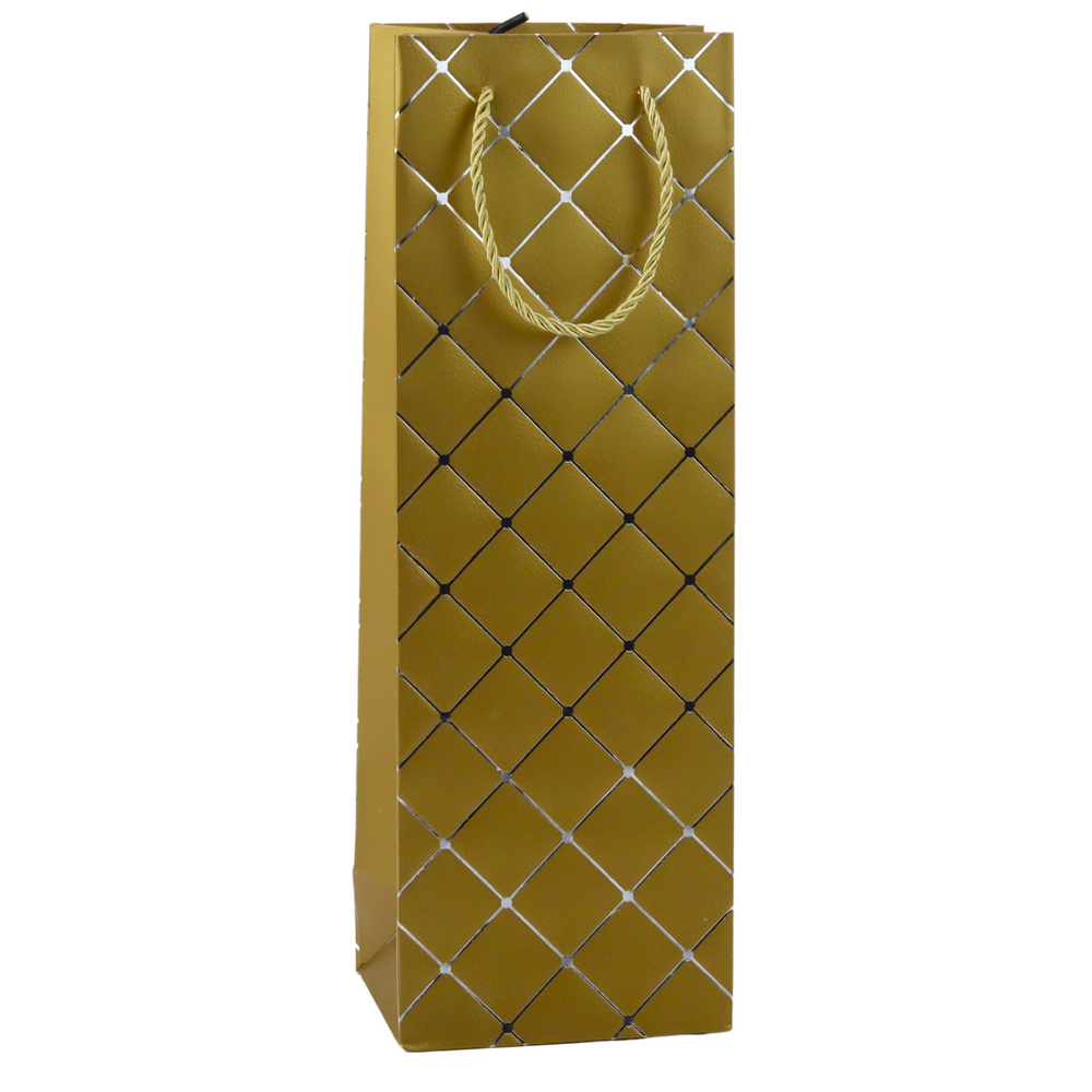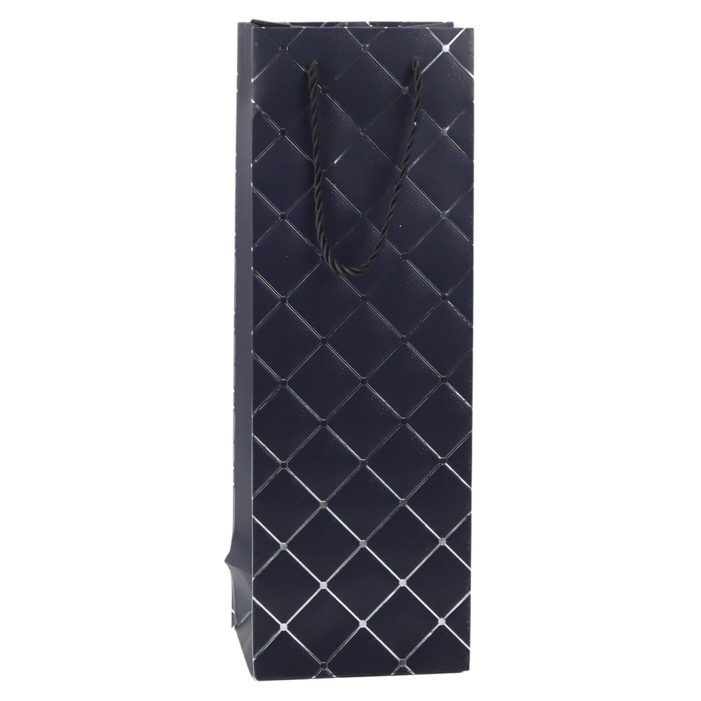 Elegancka torba prezentowa na butelkę to doskonały wybór na każdą okazję. Wykonana z wysokiej jakości papieru, torba charakteryzuje się nowoczesnym i stylowym wzorem w postaci srebrnej kraty, która nadaje jej wyjątkowego szyku. Dzięki metalicznemu połyskowi i geometrycznemu motywowi torba prezentuje się niezwykle efektownie i elegancko.