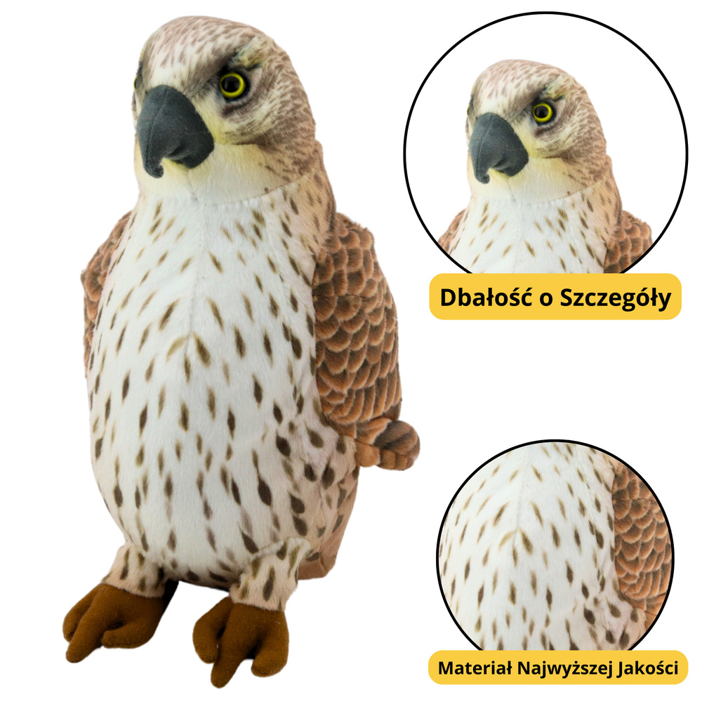 - Pluszowy sokół wędrowny to niezwykle realistyczna i efektowna przytulanka stworzona z myślą o dzieciach, które fascynują się światem przyrody. Została wykonana z miękkiego, przyjemnego w dotyku pluszu w naturalnych barwach brązu i beżu.