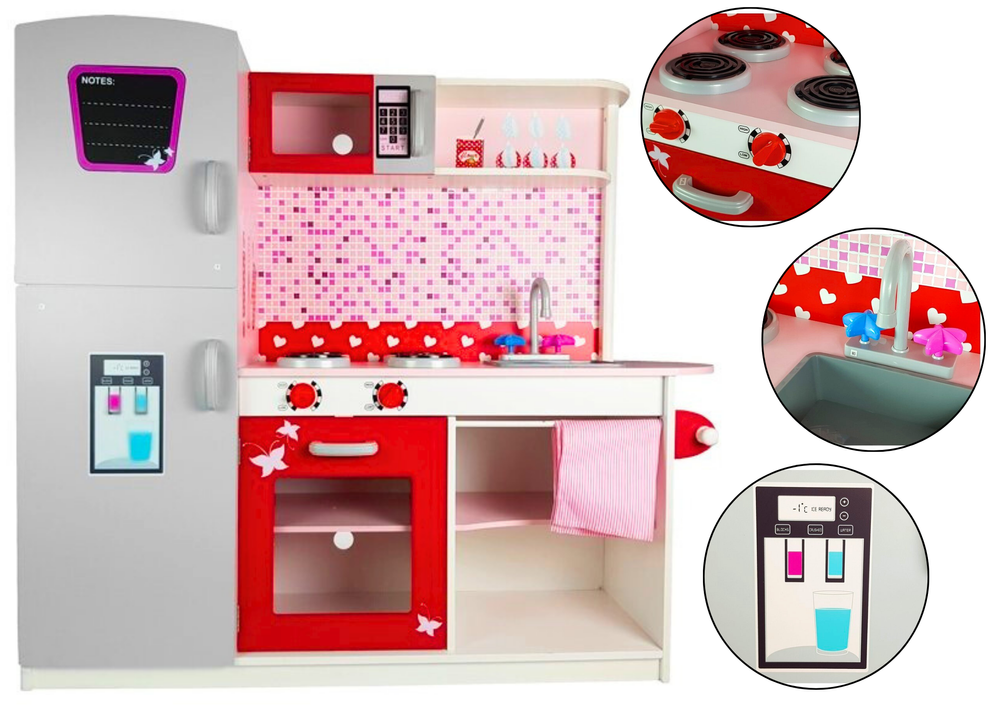 Dziecko podczas zabawy kuchnią uczy się podstawowych prac domowych.