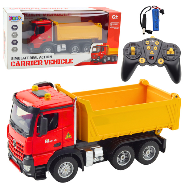 - Zdalnie sterowana wywrotka budowlana to realistycznie odwzorowany pojazd, który zapewnia dzieciom zabawę oraz rozwija ich umiejętności manualne i koordynację ruchową. Model został wyposażony w funkcję podnoszenia i opuszczania skrzyni ładunkowej.