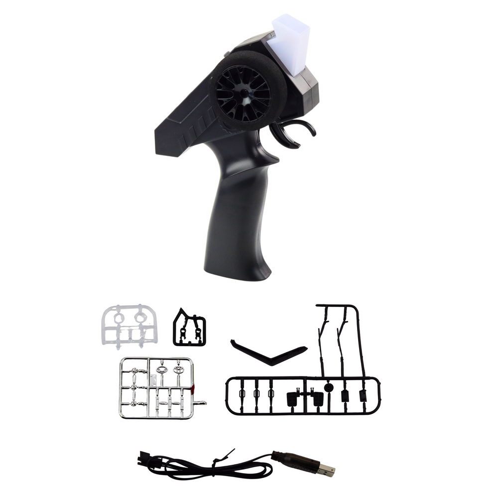 Za precyzyjne sterowanie odpowiada pilot 2.4GHz, który zapewnia pełnoproporcjonalną kontrolę jazdy i kierunku, bez zakłóceń, z zasięgiem sięgającym nawet 100 metrów. Napędzany jest przez mocny silnik szczotkowy klasy 280, a zasilany wydajnym akumulatorem 7.4V 500mAh, który gwarantuje nawet 40 minut ciągłej jazdy. W zestawie znajduje się także ładowarka USB, umożliwiająca wygodne ładowanie akumulatora.