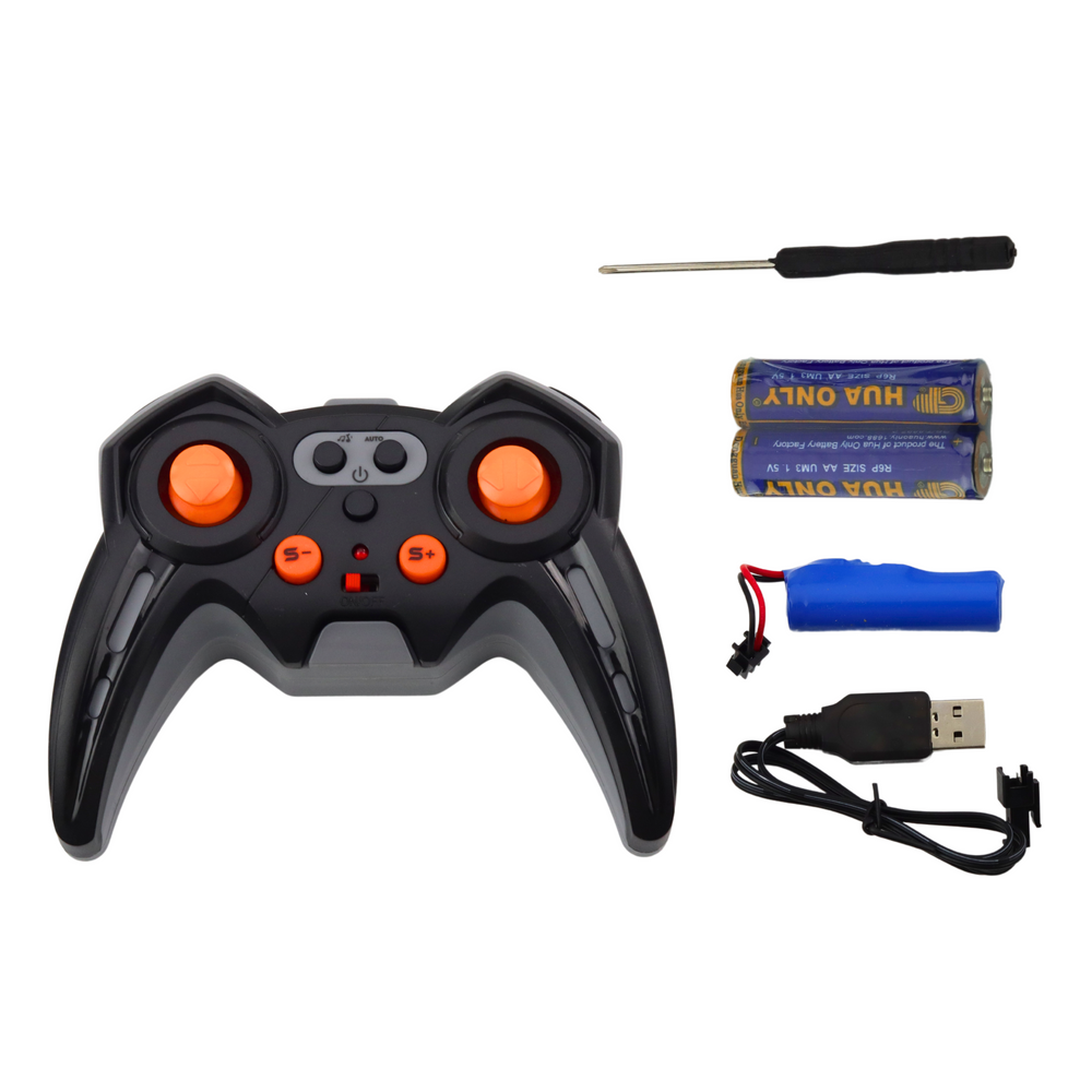 Sterowanie odbywa się za pomocą nowoczesnego pilota 2.4GHz, który zapewnia płynne i precyzyjne ruchy w czterech kierunkach oraz dodatkowe funkcje, takie jak tryb demonstracyjny i odtwarzanie dźwięków.
