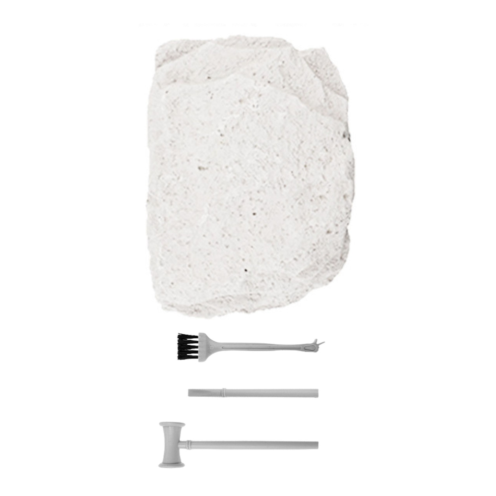 Zestaw wykopaliskowy to doskonała propozycja dla małych odkrywców, którzy marzą o przeżyciu przygody rodem z pracy paleontologa. W zestawie znajduje się kostka gipsowa, wewnątrz której ukryto fluorescencyjny szkielet dinozaura. Zadaniem dziecka jest wydobycie kości przy pomocy dołączonych narzędzi, a następnie złożenie ich w kompletny szkielet prehistorycznego stwora.