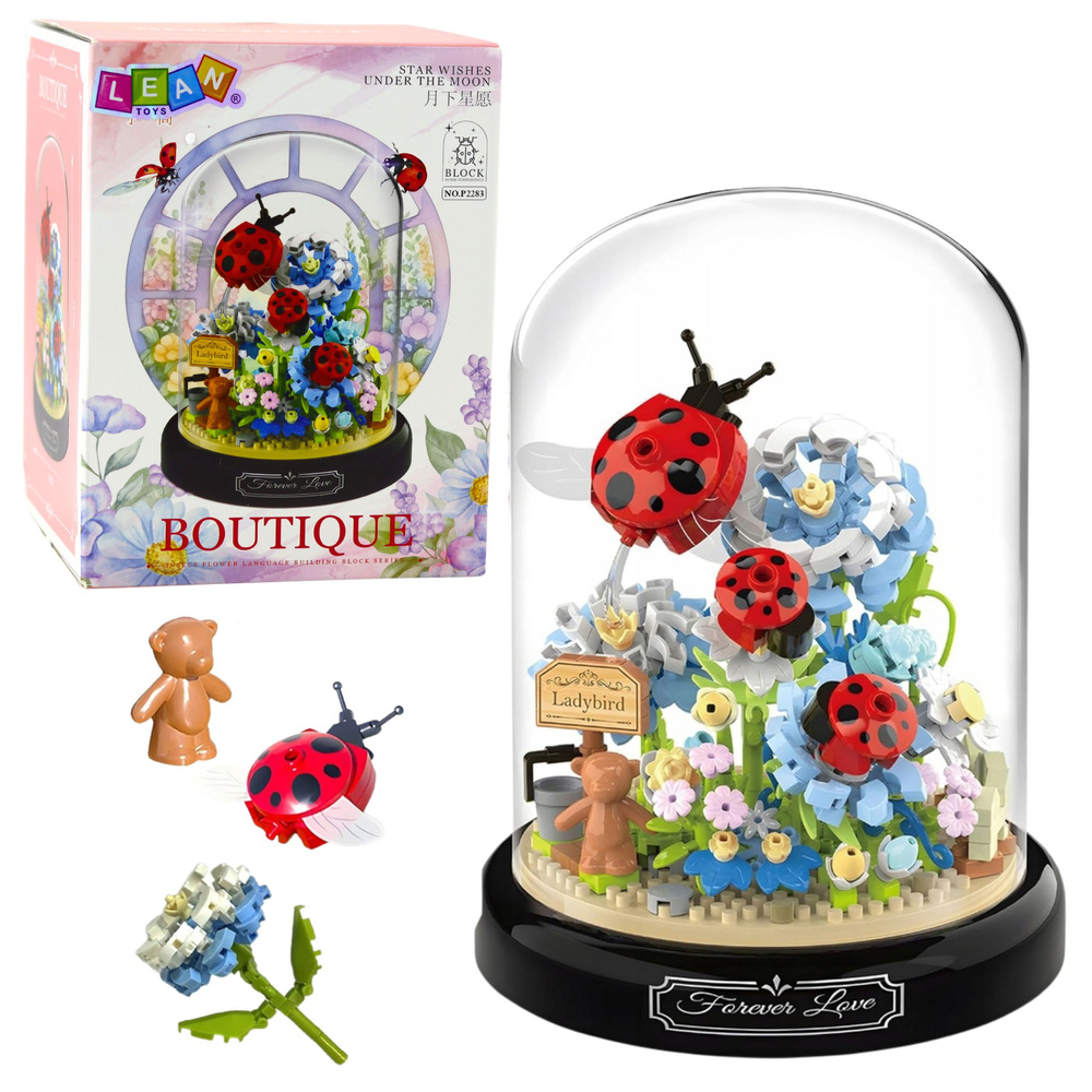 Klocki konstrukcyjne Bukiet Kwiatów to niezwykle kreatywny zestaw, który pozwala stworzyć zachwycającą kompozycję florystyczną zamkniętą w eleganckiej przezroczystej kopule. W zestawie znajduje się aż 596 elementów, dzięki którym można zbudować efektowną dekorację przedstawiającą bukiet kwiatów z realistycznymi owadami – między innymi biedronkami, które dodają uroku całości.