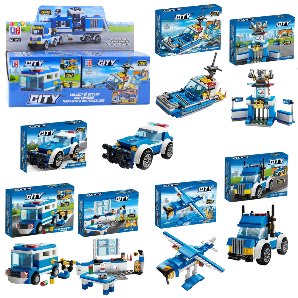- Zestawy klocków konstrukcyjnych Policja 8w1 to świetna propozycja dla młodych fanów służb mundurowych i kreatywnej zabawy. Każdy zestaw umożliwia zbudowanie innego pojazdu, budynku lub łodzi policyjnej.