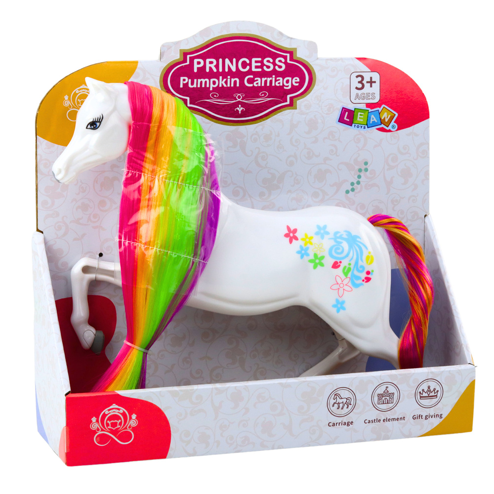 - Uroczy biały koń z długą, kolorową grzywą i ogonem to idealna zabawka dla wszystkich małych miłośników bajkowych światów. Figurka została zaprojektowana z myślą o dzieciach od 3. roku życia, zachwyca pastelowymi barwami i delikatnymi zdobieniami.