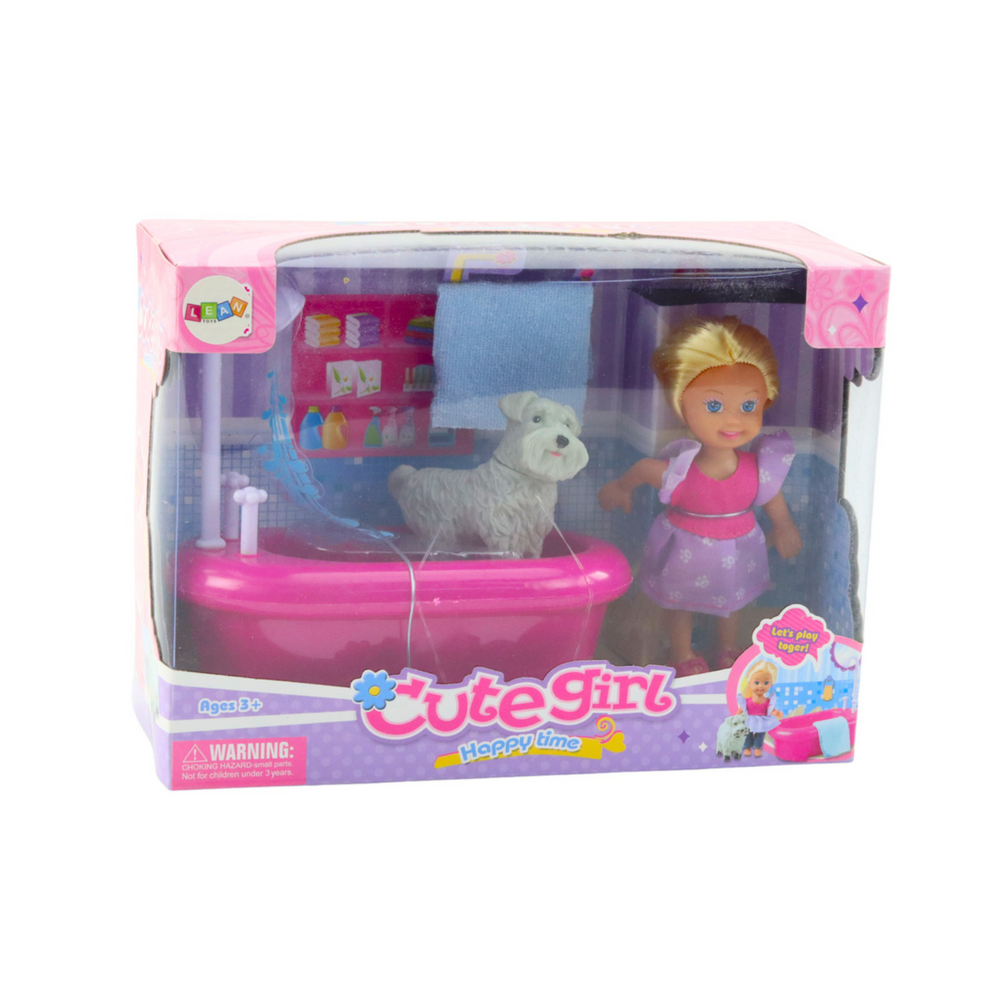 - Elementy zestawu: Lalka, piesek, wanna z prysznicem