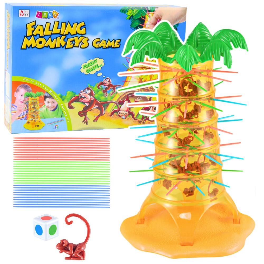 - Gra „Skaczące Spadające Małpki” to idealna propozycja dla całej rodziny. Ta barwna i emocjonująca gra zręcznościowa uczy koncentracji, logicznego myślenia i zręczności. Wystarczy włożyć kolorowe patyczki przez pień palmy, zawiesić na nich małpki.