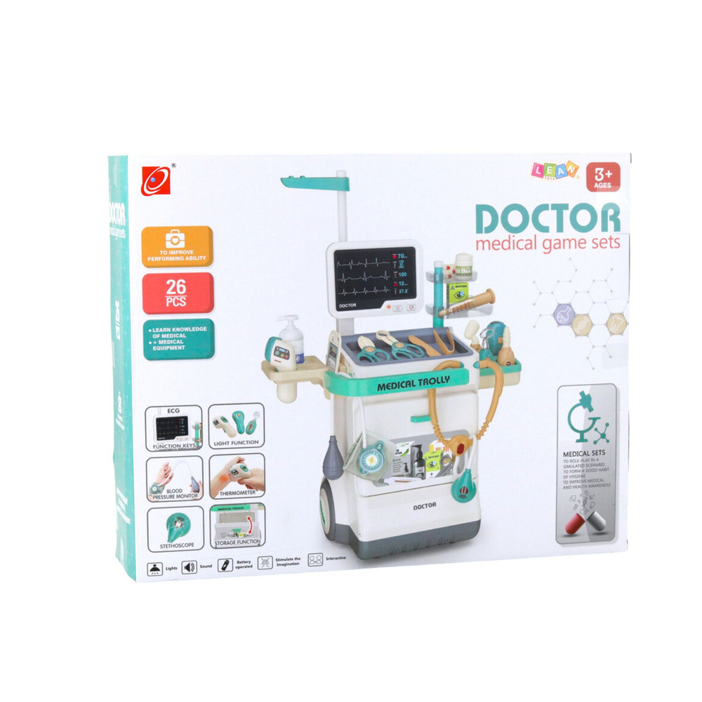- Zestaw doktora na wózku medycznym to wyjątkowa zabawka edukacyjna, która pozwala dzieciom wcielić się w rolę lekarza i poznać podstawowe narzędzia medyczne. Dzięki dużej liczbie elementów – aż 26 akcesoriów – maluch może przeprowadzać badania.