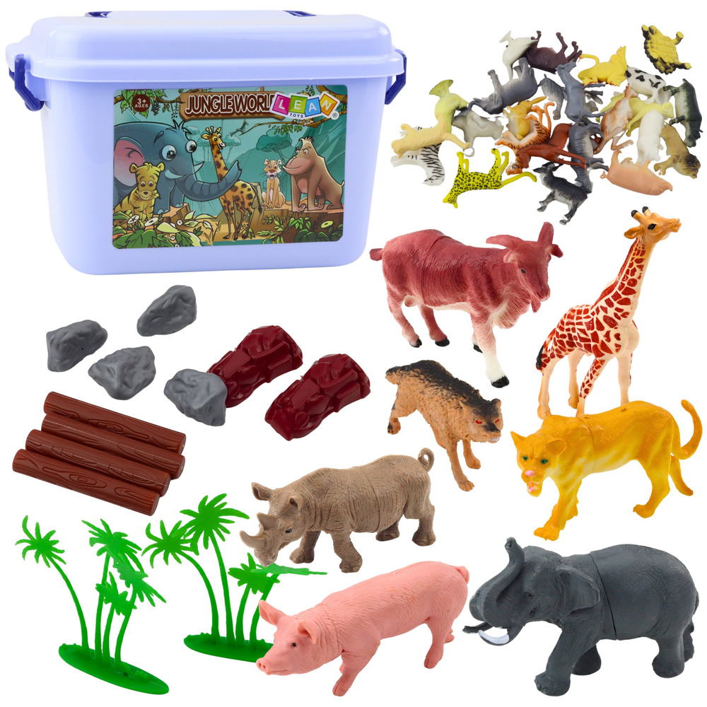 Rozbudowana kolekcja figurek dzikich i domowych zwierząt to doskonała propozycja dla każdego młodego miłośnika natury i zwierząt. Aż 58 elementów w zestawie, w tym 44 figurki zwierząt oraz elementy otoczenia pozwalają stworzyć własne zoo, rezerwat przyrody, farmę lub dżunglę – wszystko zależy od wyobraźni dziecka.