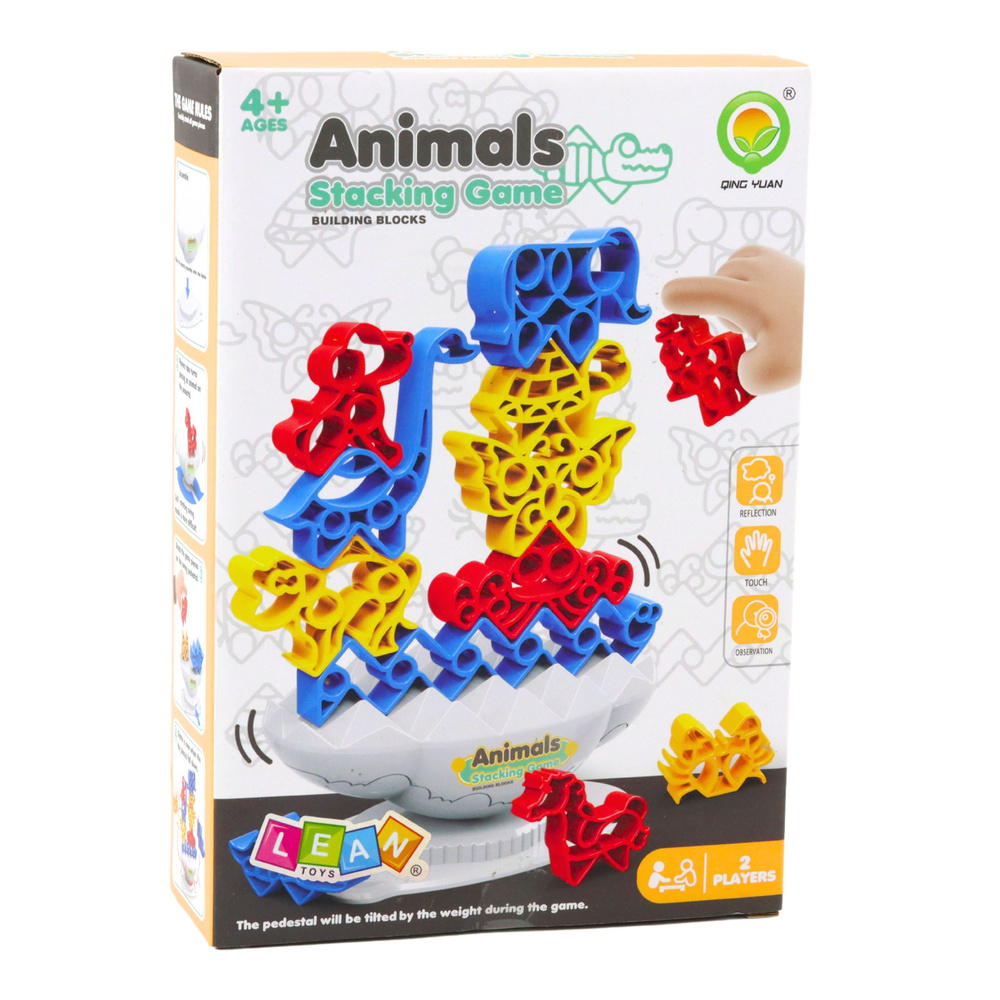 Zestaw zawiera 24 kolorowe figurki zwierząt, które należy ostrożnie układać jeden na drugim. Zabawa polega na zachowaniu równowagi całej struktury, co wymaga precyzji i sprytu. Gra umożliwia rozgrywkę na dwóch poziomach trudności – podstawowym (ze stabilną podstawką) oraz zaawansowanym (z podstawką obracającą się o 360°).