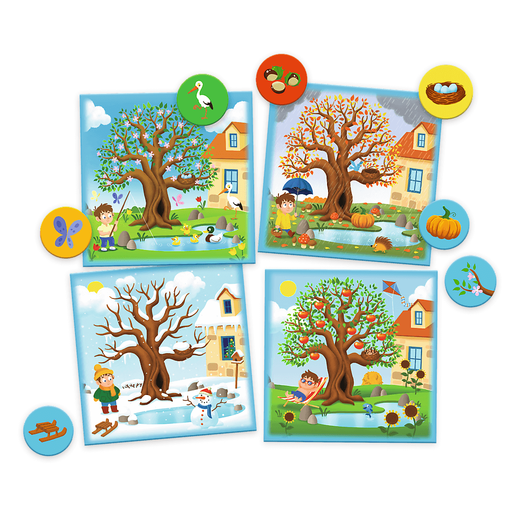Pory Roku to zabawa, nauka i rozwój w jednym – układanka edukacyjna z grubej tektury i o dużych elementach zapozna dziecko z pojęciami związanymi z porami roku.