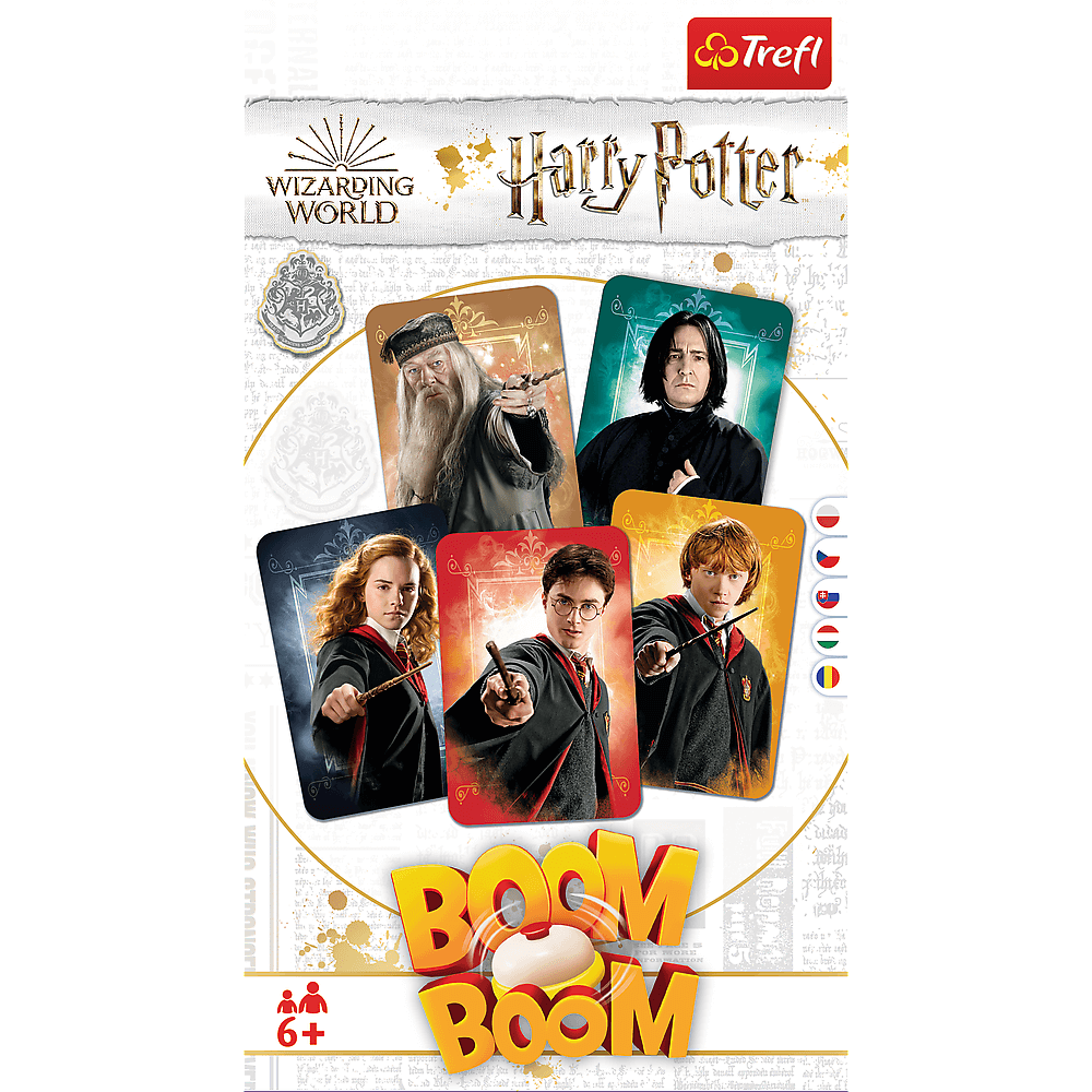 W grze Boom Boom gracze kompletują zestawy ulubionych bohaterów z filmu Harry Potter, wymieniając jednocześnie swoje karty z kartami na planszy. Po zebraniu zestawu gracz uderza w dzwonek i woła Świstoklik! Gracze mogą polować na karty tego samego typu, dzięki czemu rozgrywka jest jeszcze bardziej emocjonująca. Zbierz jak największą ilość zestawów kart i zostań zwycięzcą!