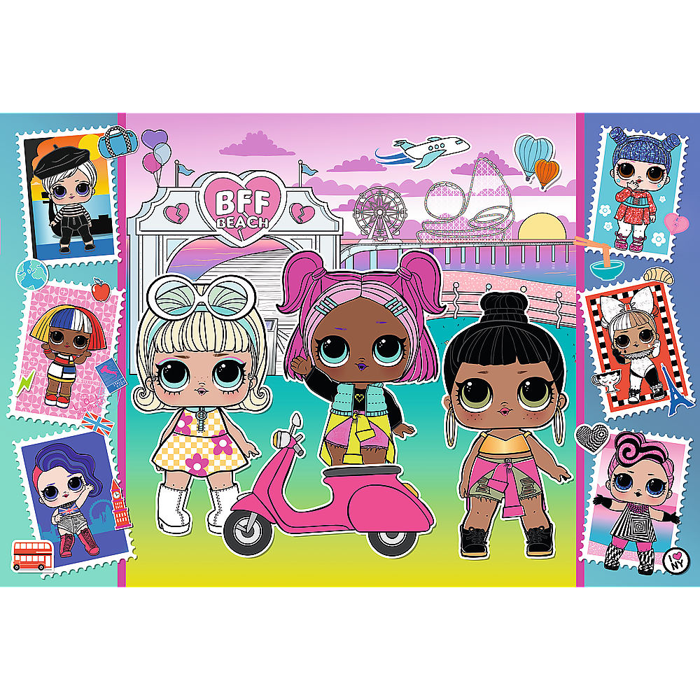 Zdjęcia laleczek to puzzle składające się z 100 elementów z popularnymi laleczkami LOL Surprise. Po ułożeniu powstanie obrazek o wymiarach 410x275 mm.