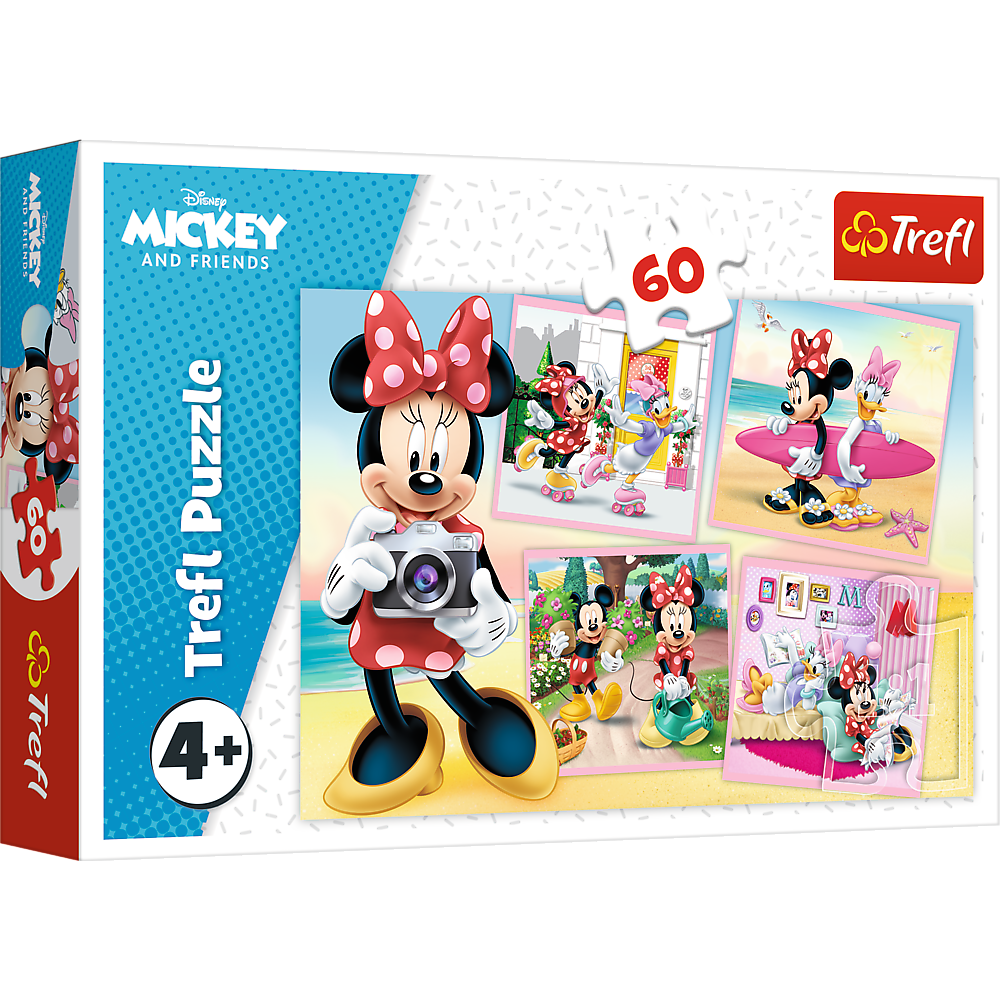 Urocza Minnie to puzzle składające się z 60 elementów, zaprojektowaną z myślą o wszystkich fanach i fankach uroczej Myszki Miki. Po ułożeniu układanki powstanie obrazek o wymiarach 330x220mm.