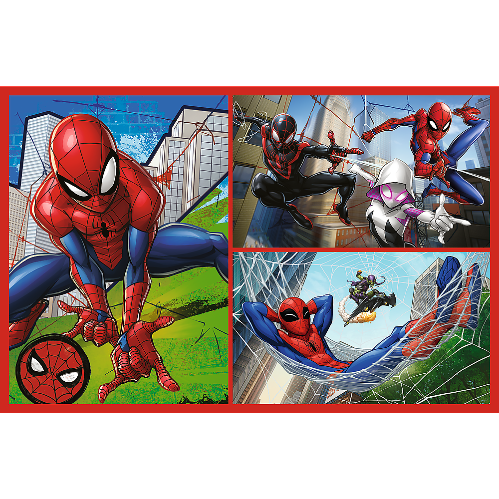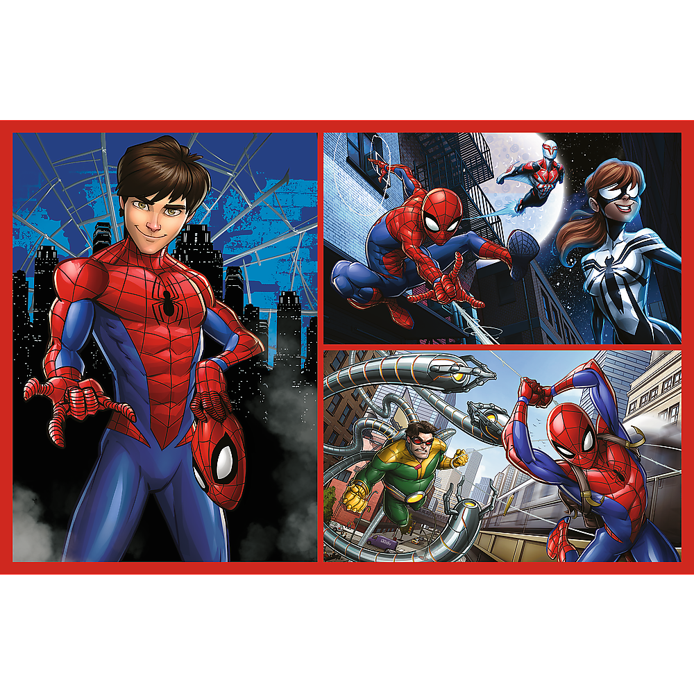 Pajęcze historie to puzzle przedstawiające kolaże z bohaterami animacji Marvela Spider-man. Każda z układanek pozwoli stworzyć obrazek o wymiarach 275x180 mm.