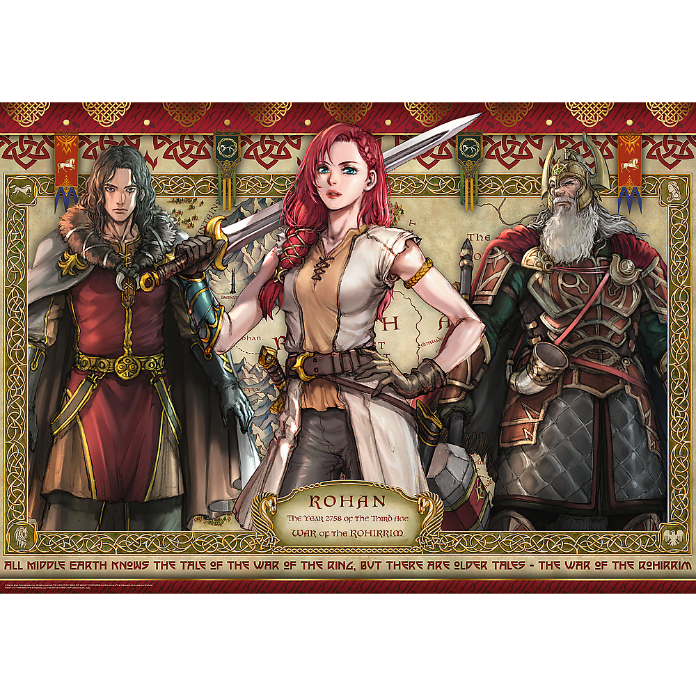 Puzzle Władca Pierścieni: Wojna Rohirrimów, składające się z 1000 elementów, przedstawiają bohaterów filmu anime opartego na twórczości J.R.R. Tolkiena. Po ich ułożeniu powstanie obrazek w rozmiarach 683x480 mm.