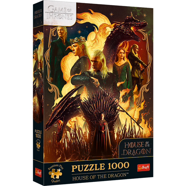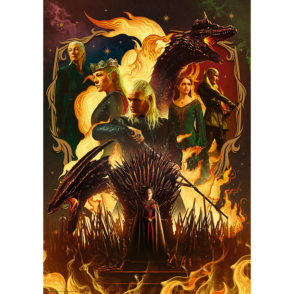 Puzzle House of the Dragon przedstawiają rozpalającą wyobraźnię grafikę z bohaterami serialu Ród Smoka. Po ich ułożeniu powstanie obraz o wymiarach 683x480 mm.